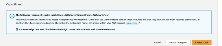 Check the option to confirm the resource creation and select Create Stack. This will initiate the steps for resource creation on AWS Organization account as defined in the stack definition.