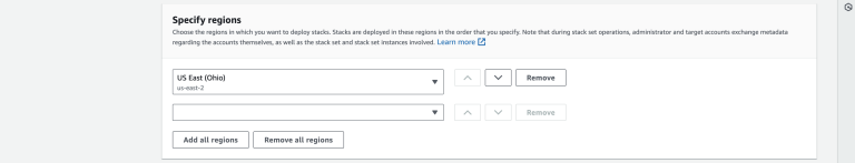 In the Specify Regions section, enter the region where the stack will be deployed. This would be the same region that is selected in step 14.