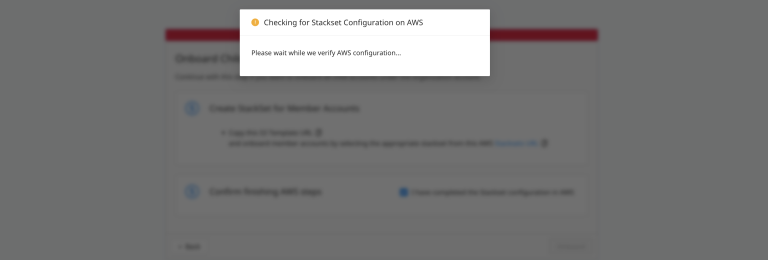 Go back to DSPM and select the option I have completed the Stackset configuration in AWS. This will launch the Configuration Check pop-up and on successful completion message there, the Onboard option will be enabled.