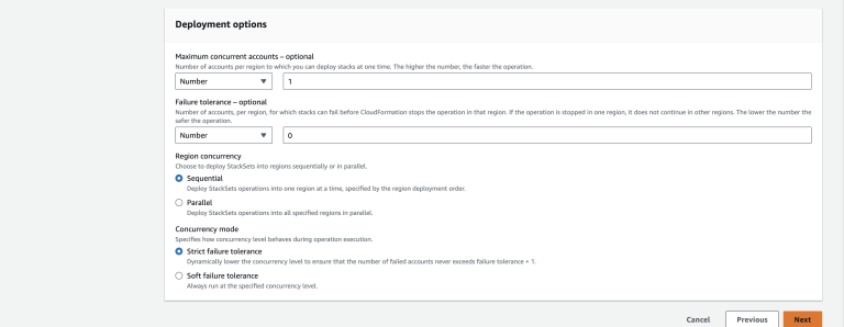 If you need to include all accounts under an Organizational Unit, select Deploy stacks in organisational units and provide the OU ID in the Organisation numbers field.
