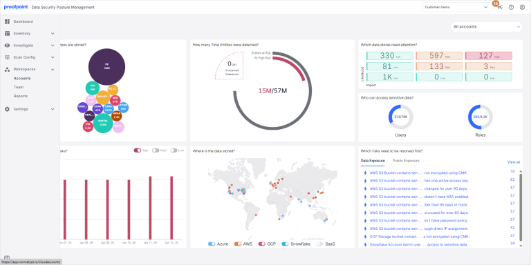 - Login to DSPM. In the left side menu, go to Workspaces > Accounts.