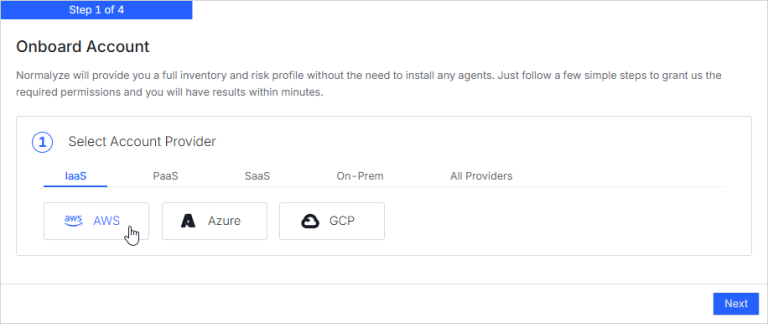 There are two account types that are supported today for AWS, Standalone and Organization. Toggle the selection based on the requirement.