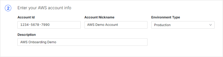 Account Id Enter the AWS Account ID for the AWS account you want to onboard.
