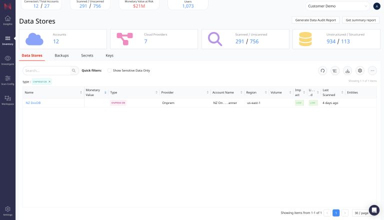 Once the scan completes, navigate to the Data Stores Inventory page and enter into the search bar