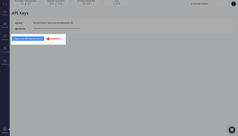 Leave the current tab open, then open a new tab with DSPM in your browser. From there, go to Settings, then API Keys. Generate or Regenerate an API Key and Secret.