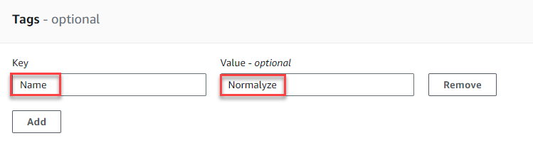 This is used for the DSPM IAM role to access the secret. It is important to enter the Key as “Name” and the value “Normalyze” exactly as shown here with capitalization.