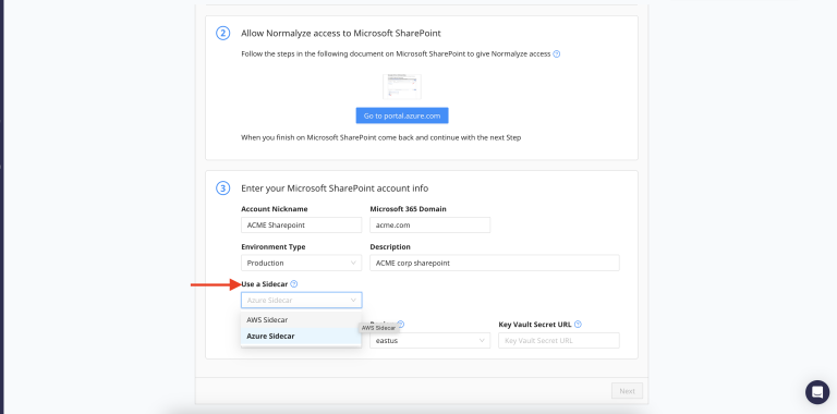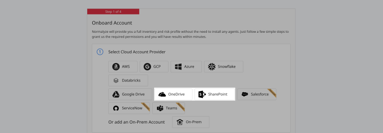 Sharepoint, OneDrive and Teams can be onboarded to DSPM with either AWS or Azure as the sidecar. Based on the cloud provider which is being used as sidecar, the steps specific for them are detailed below.
