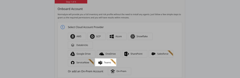 Select “SharePoint”, “OneDrive” or “Teams” based on the application to be onboarded