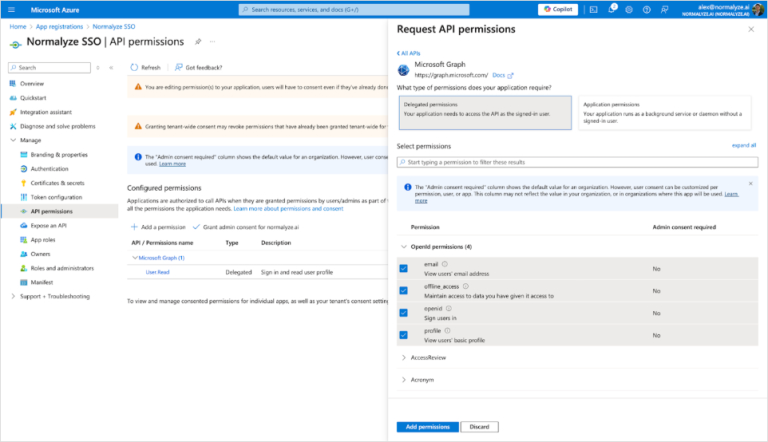 Go to the Authentication tab. In Front-channel logout URL, enter https://login.normalyze.io/login/callback