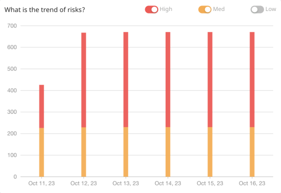 Mouse over any specific date in this graph to see the count summary for each risk severity.