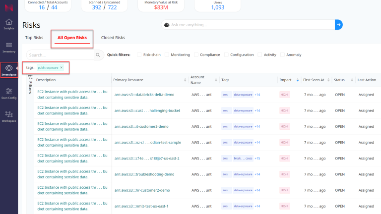 You will be redirected to the All Open Risks section with the preset filter tags: public-exposure.