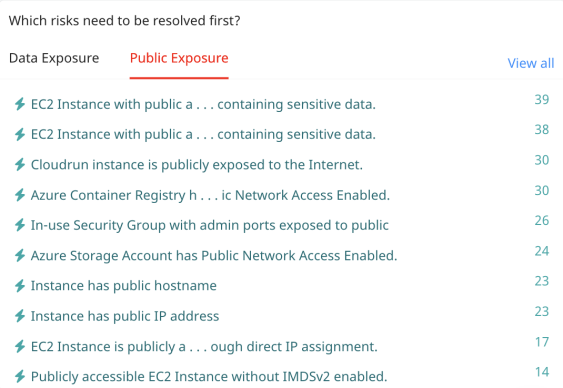 Top risks are categorized as either Public Exposure or Data Exposure under their respective tabs.
