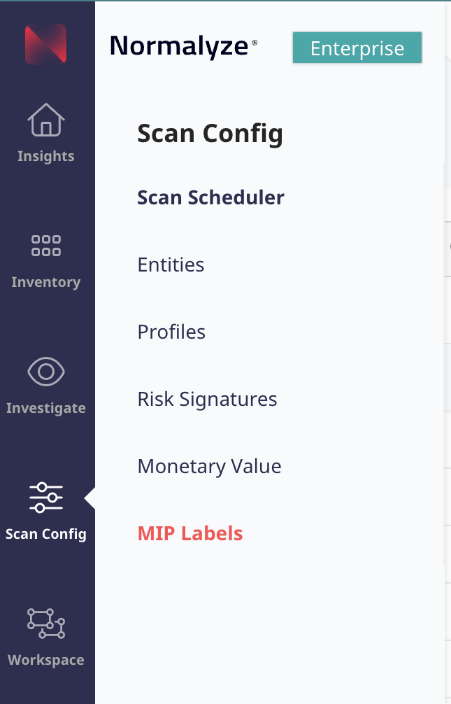 - Navigate to Scan Config - MIP Labels